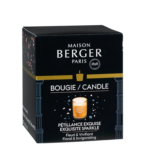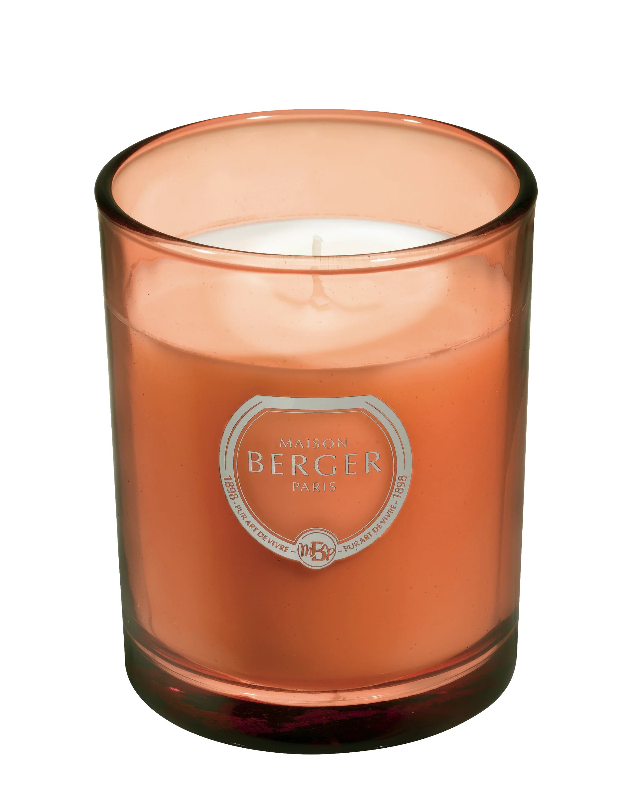 The Olympe Exquisite Sparkle scented candle is imbued with elegance and femininity. Its transparent lacquered glass in a coppery pink tone gives it a precious jewel effect, as does the logo affixed in silver screen printing. With incomparable brilliance thanks to light reflections, the object immediately illuminates a room. A striking contrast then takes place, between robustness and delicacy, highlighting your interior. What could be better than bringing a little glamor and warmth to your table decoration during the festivities! With its duration of use of 36 hours, this candle will follow you until the end of the night. This divine Olympe scented candle creates a friendly atmosphere and real moments of good humor. The tangy notes of grapefruit give a tonic boost to the olfactory composition supported by the woody power of patchouli and some intoxicating effervescent accords. These invigorating scents make Exquisite Sparkle one of the best-selling perfumes of Maison Berger Paris.