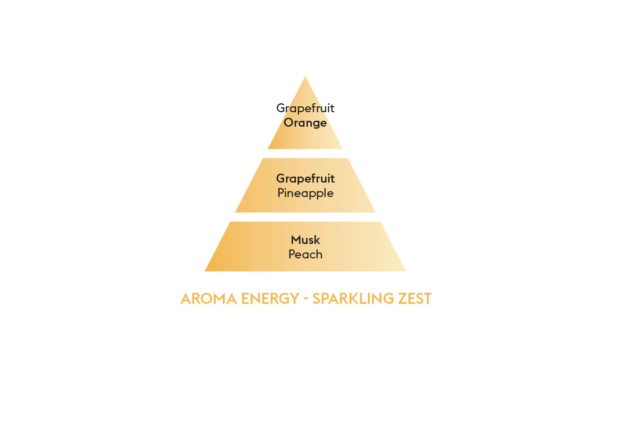 The Sparkling Zest fragrance is an ode to new-found freshness: the energy of its citrus notes are draped in sensuality with the spicy scents of musk. The essential oil of grapefruit promises a healthy, refreshing and invigorating atmosphere.