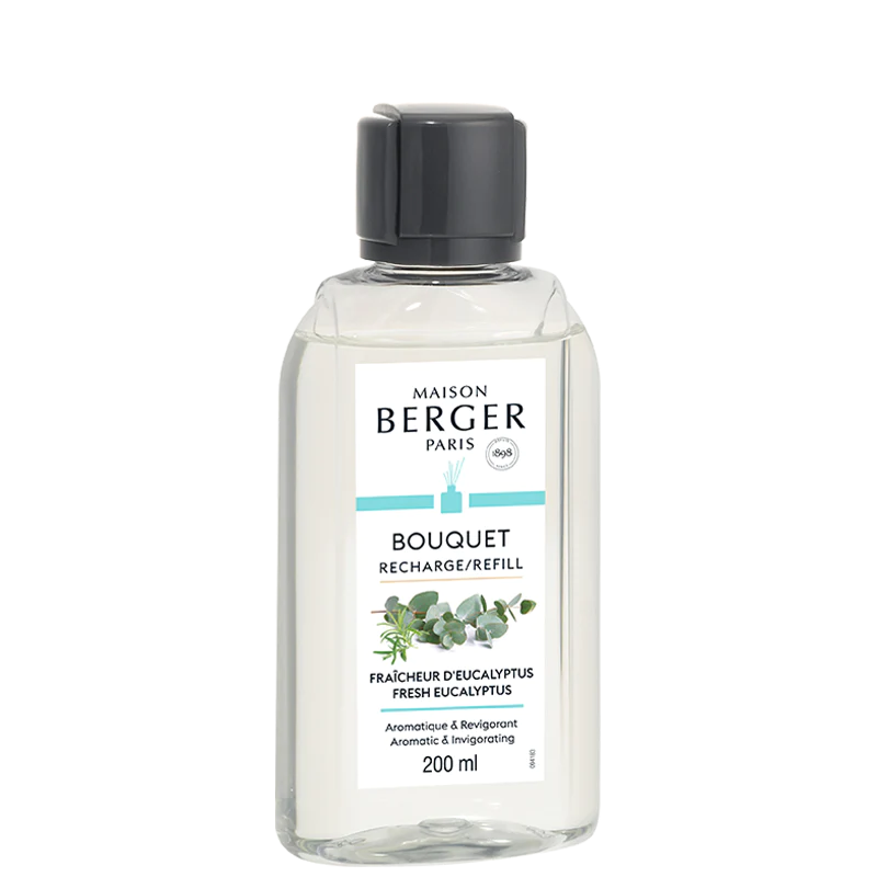 The silhouettes of large aromatic trees are visible; in the distance, there is a stream; the nature is lush and generous... The top green and citrus notes of the Fresh Eucalyptus fragrance for scented reed diffuser announce energy and effervescence, loudly and clearly. The eucalyptus heart takes an extra step towards the promise of infinite freshness by adding lavender and a few oceanic notes to its aromatic range. To finish, this invigorating and luminous, slightly masculine composition settles on an enveloping base of moss and wood. Perfume secret among the 600 different species of this shrub from Australia, Maison Berger Paris has chosen Baby Blue Eucalyptus for this new version of its Fresh Eucalyptus Home Fragrance. The scent produced by the leaves of this species is particularly strong and invigorating!