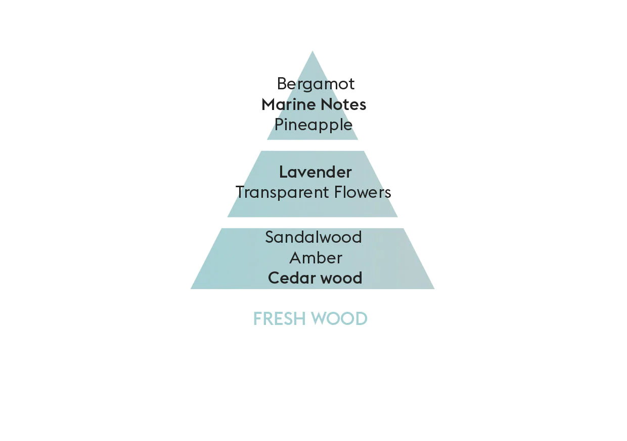 Let the Fresh Wood fragrance lead you down a serene path where the woods meet the sea.