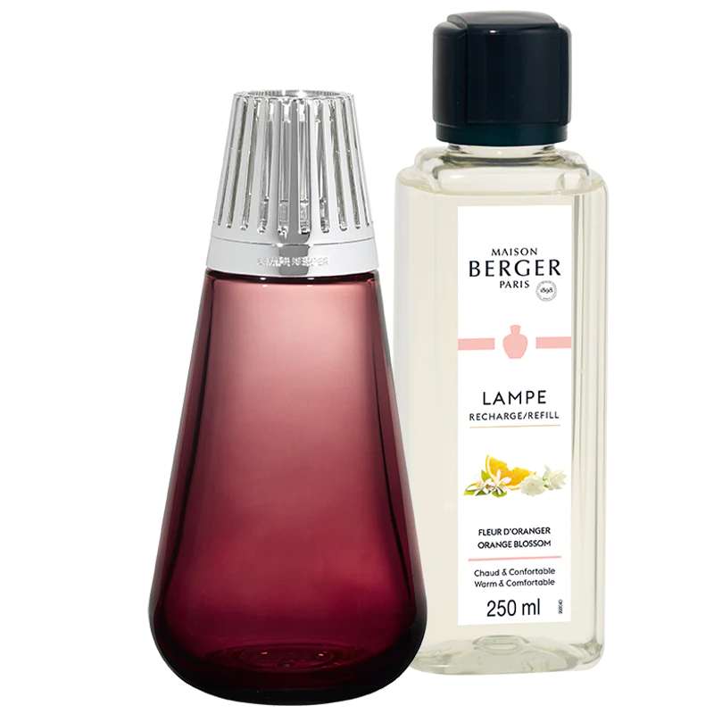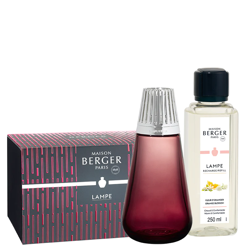 The Amphora Lampe Gift Set in Raspberry, designed by Armand Delsol, is crafted from stunning lacquered glass in an elegant color. A silver cap adds a gleam to the lamp's simple, delicate design, giving any room a lively atmosphere. The purifying Orange Blossom fragrance adds a cozy touch for a cocooning ambiance. The fragrance is a selection of green notes, sultry neroli, and intensely floral jasmine. The composition imbues your home with a comforting sense of well-being. Add a seductive touch to your décor with this Lampe Berger.