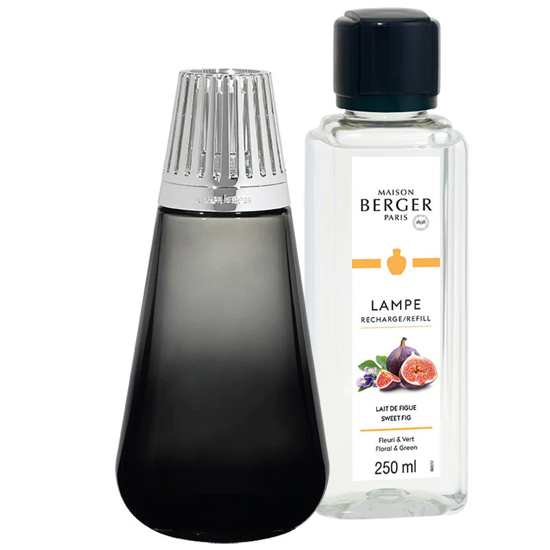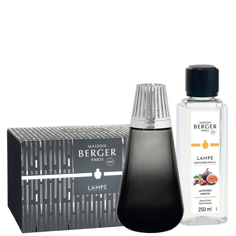 Lampe sold in a gift set with accessories: wick-burner, amphora silver diffuser cap, stopper, and funnel + 250ml Sweet Fig home fragrance.