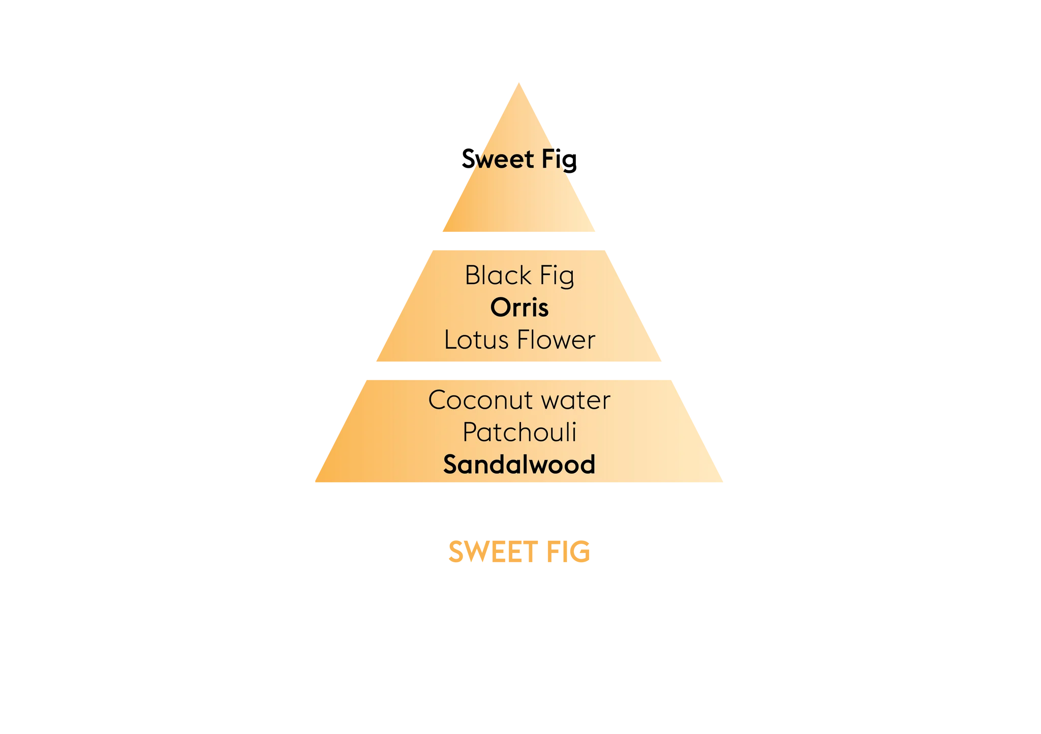 Its departure from natural fig milk is green and sassy Its heart of black fig is lovingly embraced by a valiant iris and a lotus flower The idea of the fruit slowly disappears giving way to a round, slightly sweet accord of coconut water that gives an astonishing summer heat, the whole, languid on a patchouli base sprinkled with sandalwood shavings.