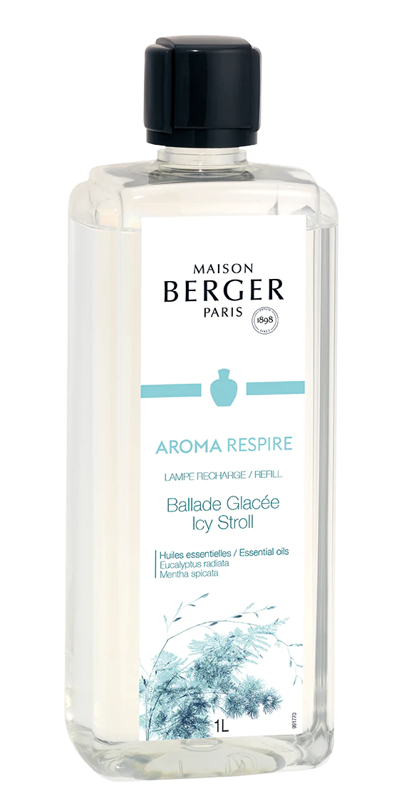 The Aroma Respire Lamp Refill diffuses the fresh notes of its Ballade Glacé fragrance. The essential oils of eucalyptus and peppermint promote your respiratory well-being. The aromas of eucalyptus intertwine with the powerful scents of menthol. The spicy peppermint goes well with the resinous smell of pine needles. The olfactory composition ends on a note of thyme, warm and lively, immediately recognizable. Like a gourmet dish or a very subtle wine, this refreshing aromatic fragrance will delight your sense of smell.