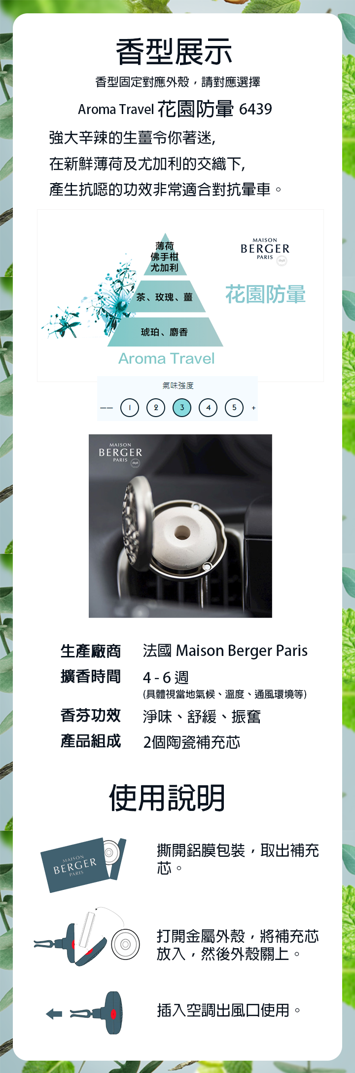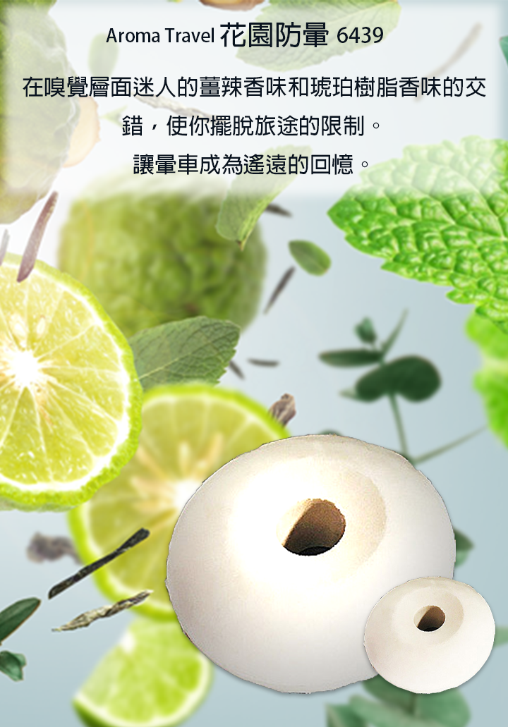 The three main olfactory notes in this aromatic garden - peppermint, ginger and amber - help to fight travel sickness. The olfactory composition is enriched in essential oils with anti-nausea virtues.