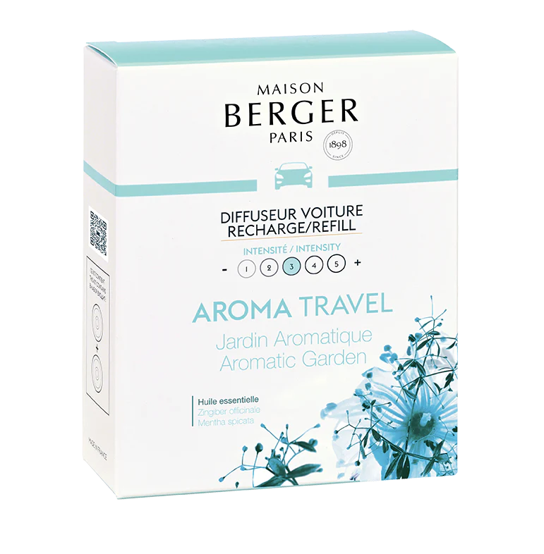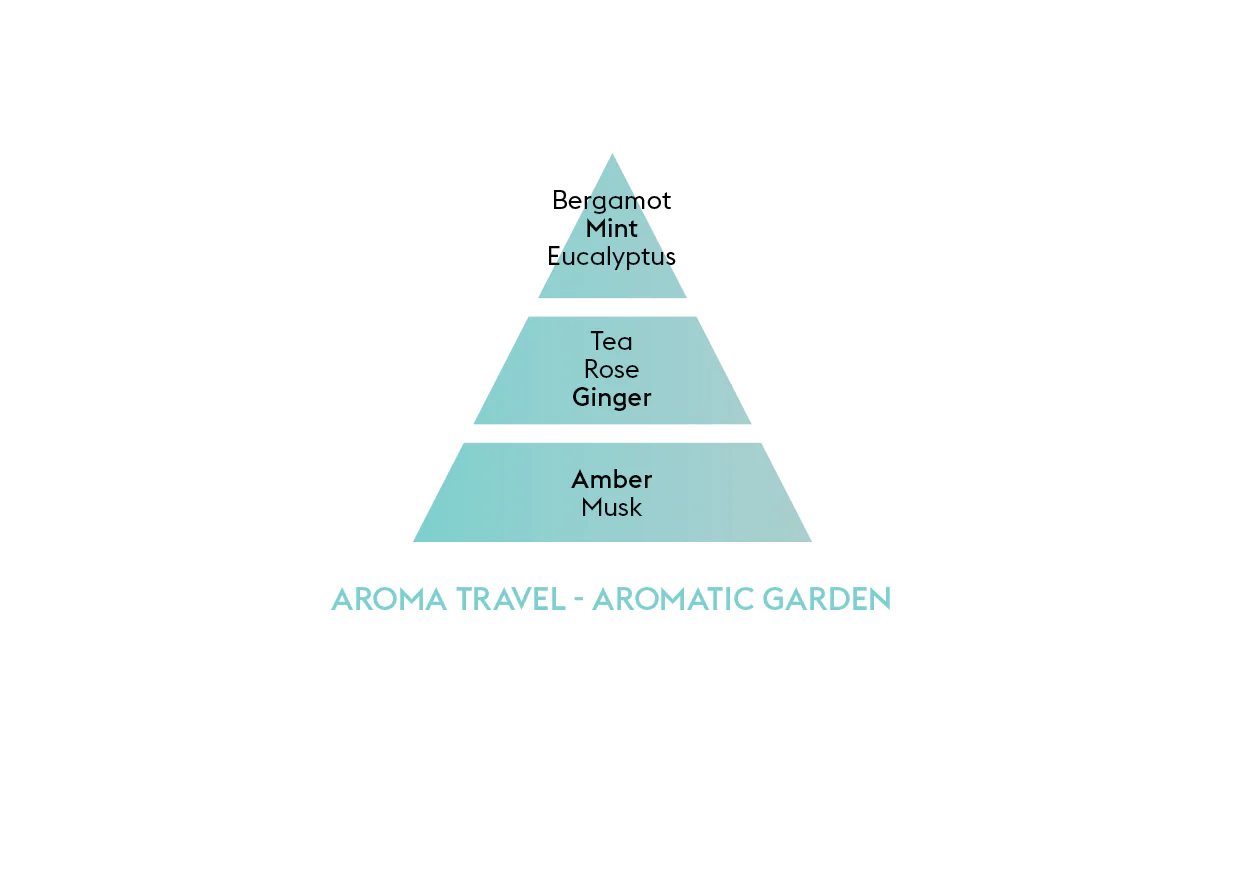The Aroma Travel Aromatic Garden fragrance captivates you with its powerful and spicy notes of ginger. Supported on the one hand by reassuring and refreshing mint and on the other by a mellow amber facet. The whole is enriched with essential oils with anti-nausea properties so that travel sickness is nothing but a distant memory!