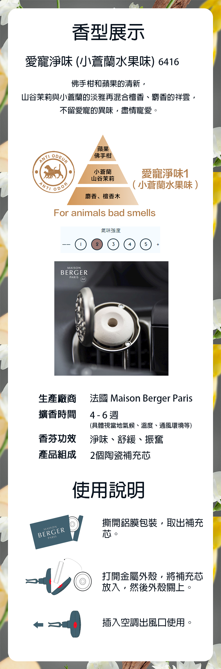 愛寵淨味(小蒼蘭水果味) 車用香氛補充芯(2陶片)