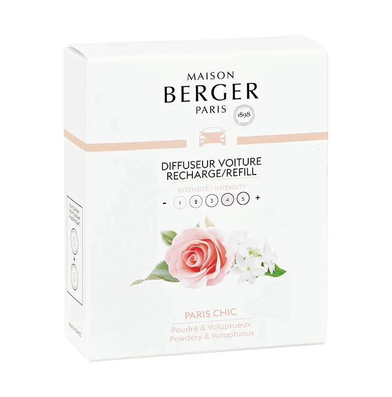 The Paris Chic Car Diffuser Refills are suitable for all of our car diffuser models! Many fragrances are now available for these refills.The Citrus Breeze Car Diffuser Refills with their zesty and sparkling scent notes are timeless and fill the interior with joy. The exuberant scents of grapefruit and bergamot are energized by eucalyptus, for an ultra-fresh start. The spices of pink pepper and cardamom with their frank and refined scents mingle with the lightness of the aquatic notes. Then, this vibrant olfactory composition ends with the woody and warm power of vetiver, musk, patchouli and oakmoss.