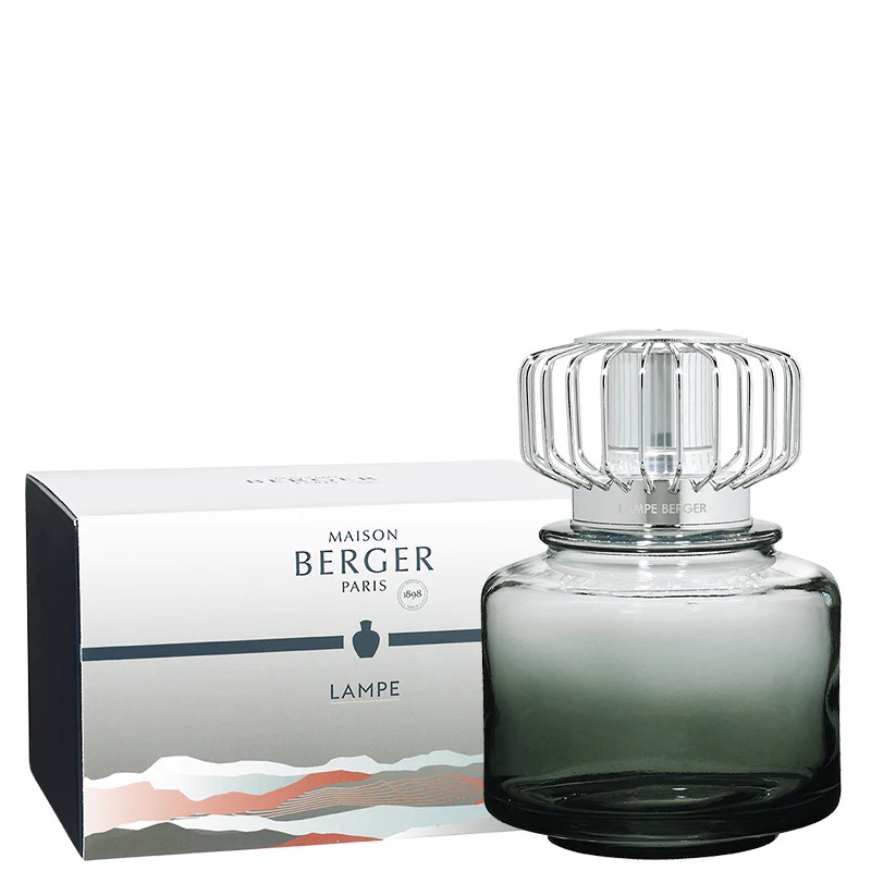 Lamp sold in a gift pack with accessories: wick-burner, Land Silver Frame diffuser top, stopper cap, and funnel.