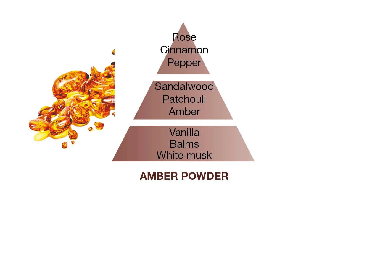 Amber Powder is a sensual home fragrance that will swathe your interior in a very warm atmosphere. Its scent of spices boosts the elegance of rose and then the voluptuous beauty of ambergris is highlighted by sandalwood and patchouli. A veil of white musks then envelops a base of balm and vanilla.