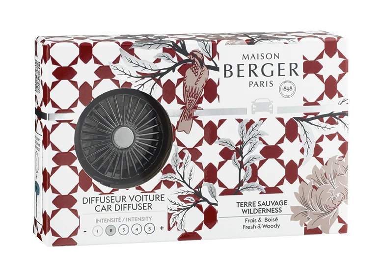 The round design of this Wilderness Prism Car Diffuser is a great contemporary classic at Maison Berger Paris. Conceptualised around geometry, this stylish object includes many concentric metallic rays that fan out as so many facets. Its glossy black finish perfects the object while elegantly embellishing your car. The ultimate little touch of luxury: the magnetic opening system enables you to easily insert the Wilderness fragrance refill included in the pack. Perfume your car with style, with the Wilderness Prism Car Diffuser, for unique olfactory sensations. Discover its zesty lemon notes enhanced by the green freshness of tomato leaves, and sublimed by the leathery scent of white birch, on woody bottom notes. A strong and surprising fragrance that reveals all its complexity even at a low intensity. This useful and practical car diffuser will also be greatly appreciated by your loved ones when offered as a gift!