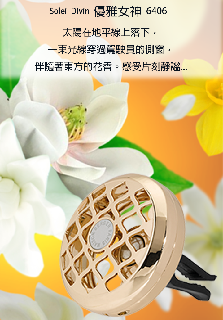 Make your car journeys less humdrum with this mysterious fragrance of magnolia and its attractive solar femininity. 太陽在地平線上落下,一束光線穿過駕駛員的側窗,伴隨著東方的花香。感受片刻靜謐
