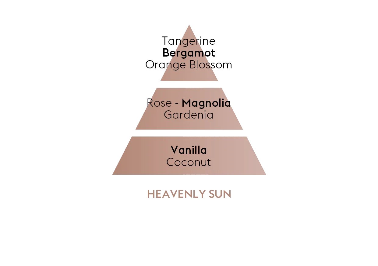 A fragrance that transports you elegantly like a solar breath with a very feminine aura, prodigiously sensual. Heavenly Sun, with fresh and sweet top notes, a mix of soft lemony magnolia and Intensive sweet floral of orange blossom, a silky aroma in the middle. Ending it with milky coconut notes and sweet vanilla laying at the base. An Enticing yet graceful and harmonious aroma.