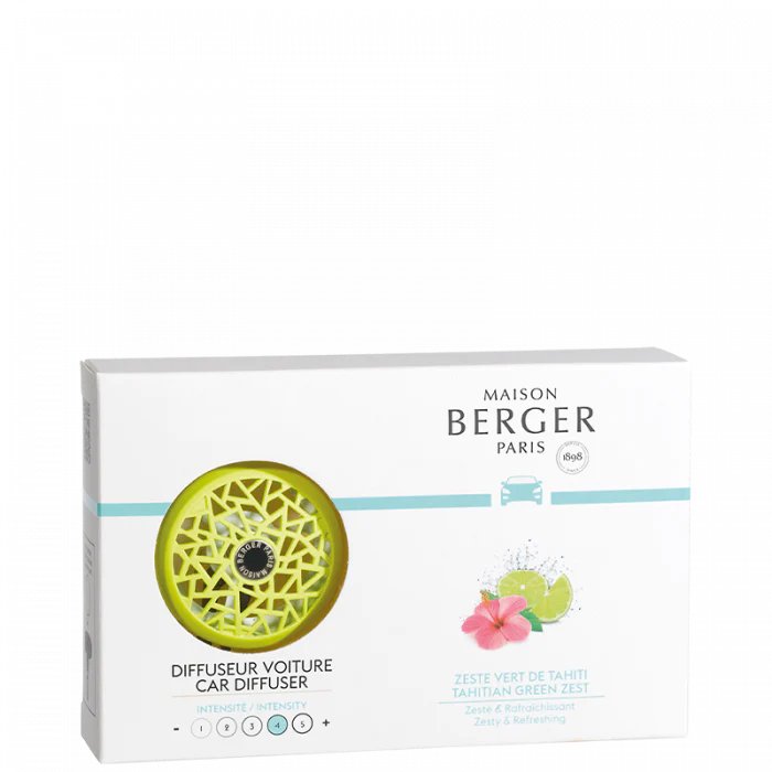 The Green Aniseed Car Diffuser adds a colourful and energising touch to your car interior. Nature is represented in all its splendour, magnified by the fresh Tahitian Green Zest fragrance. Its citrus flight of lime, followed by the subtle scents of lemon tree leaves and the woody fragrance of patchouli will captivate you. A perfume that evokes holidays and that will definitely have an effect on you.