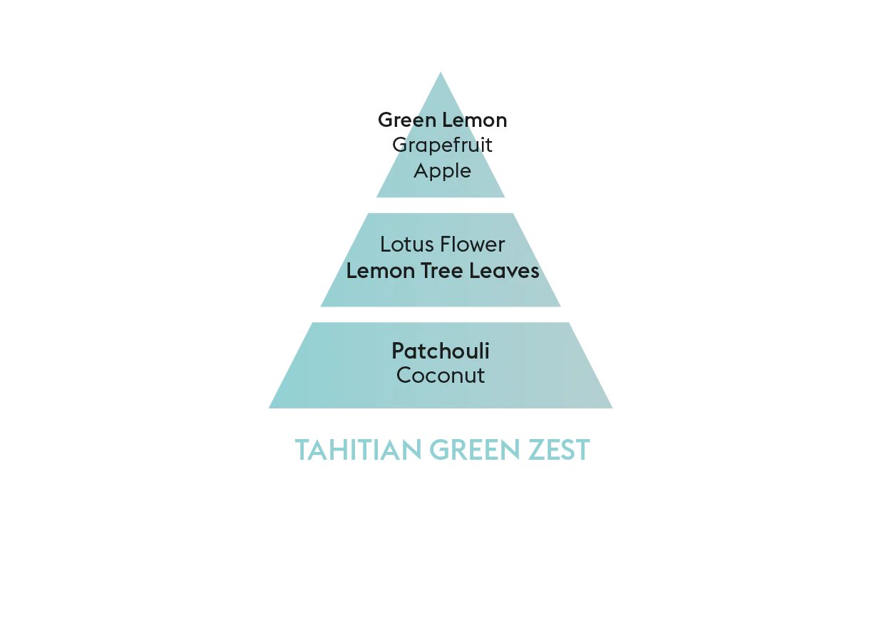 The Tahitian Green Zest Lampe Berger Perfume diffuses fresh and tangy scents. It all begins with the energetic and citrus notes of lime and grapefruit, which are combined with juicy apple scents. The gentleness of lemon tree leaves and lotus flower follow. The olfactory composition ends on a woody and exotic note of patchouli and coconut. You’ll be transported away to another place!