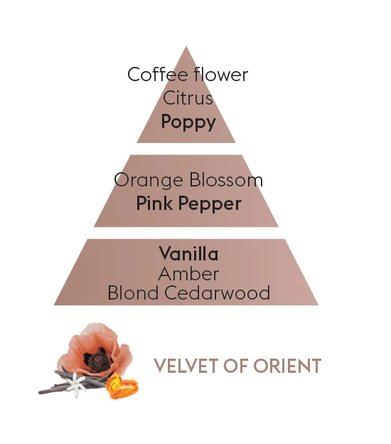 This warm, voluptuous fragrance opens on the energy of coffee flower, enhanced by sparkling citrus and mysterious poppy. The heart is composed of sweet and airy orange blossom sprinkled with spicy pink pepper. In the base, sweet vanilla is warmed by amber and blond cedarwood.