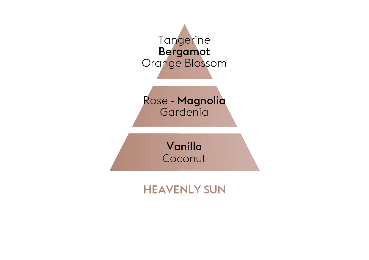 A fragrance that transports you elegantly like a solar breath with a very feminine aura, prodigiously sensual. Heavenly Sun, with fresh and sweet top notes, a mix of soft lemony magnolia and Intensive sweet floral of orange blossom, a silky aroma in the middle. Ending it with milky coconut notes and sweet vanilla laying at the base. An Enticing yet graceful and harmonious aroma.